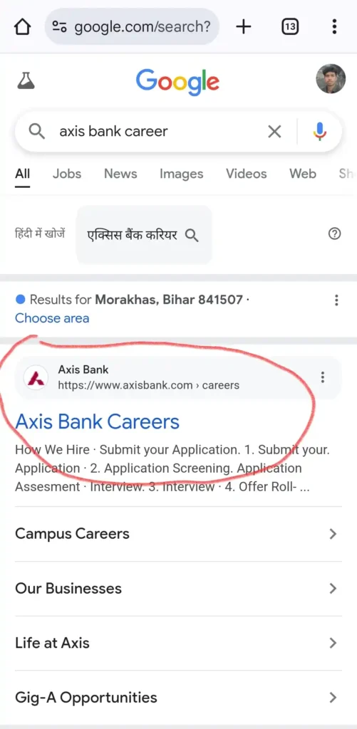 #1. Google पर Axis Bank Career सर्च कीजिये