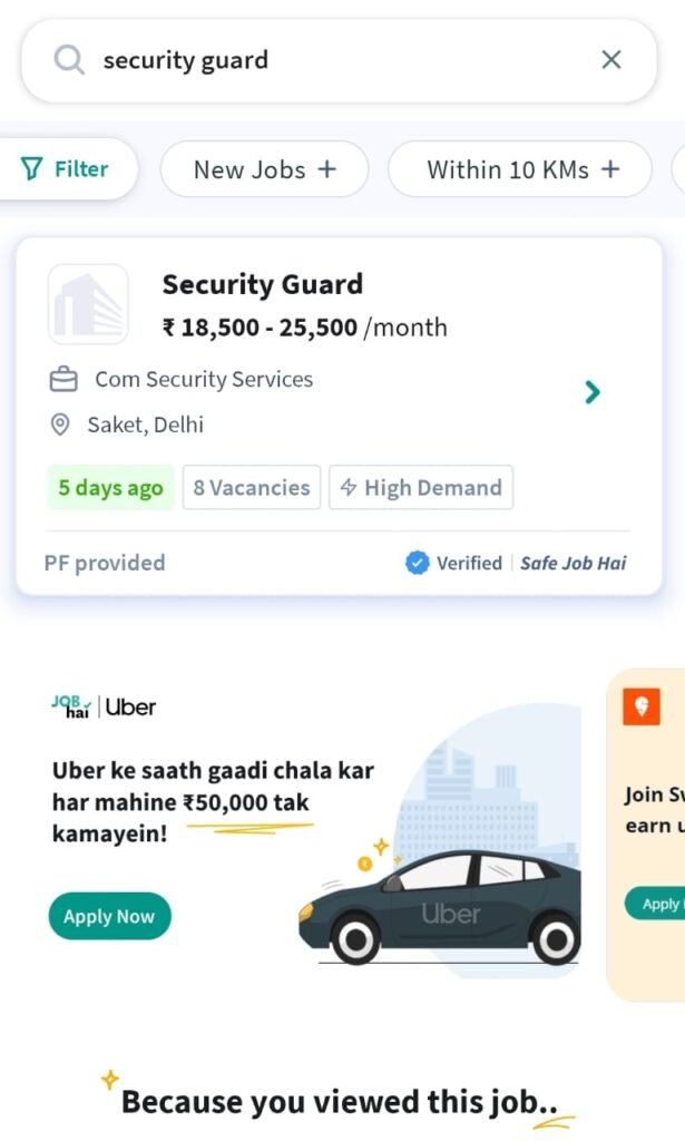 इसके बाद इन एप पर आपको अपना अकाउंट बनाकर जॉब सर्च में ” Bank Security Guard ” लिखकर सर्च कर देना हैं ,