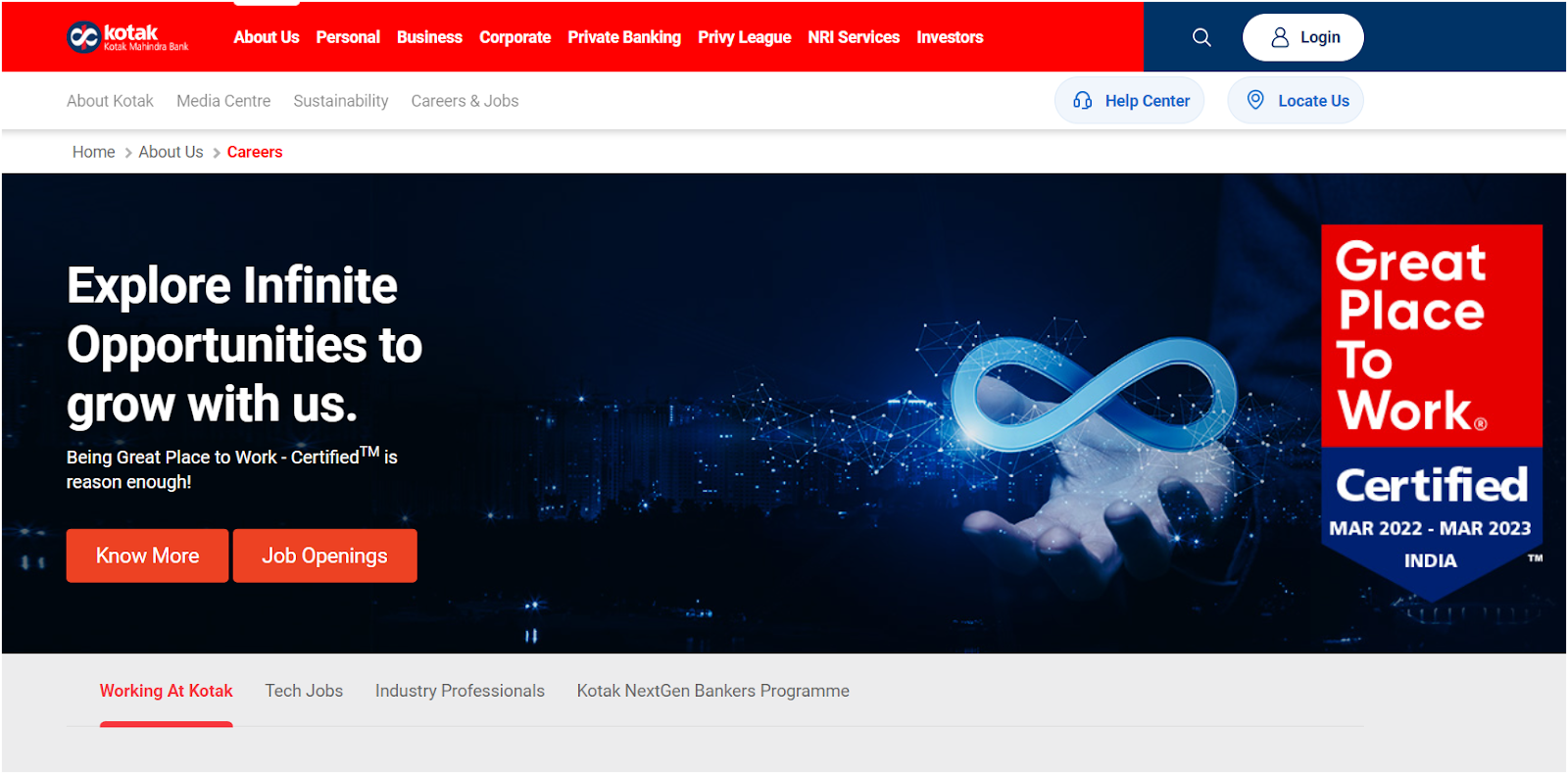 Kotak Bank के ऑफिसियल करियर वेबसाइट पर जाएँ