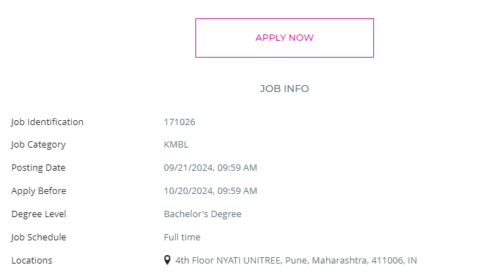 जब आप किसी जॉब को अप्लाई करने के लिए Apply Now के ऑप्शन पर क्लिक करते है , तो आपके सामने कुछ इस प्रकार का Webpage Open होकर आता है |
