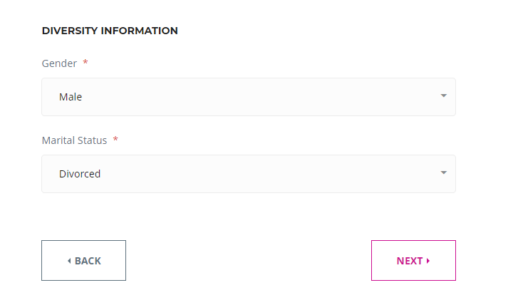 इसके बाद आपके सामने एक Diversity Information का एक फॉर्म आ जायेगा , जिसमे आपको अपनी Gender और Marital Status के बारे में जानकारी को देना होगा |