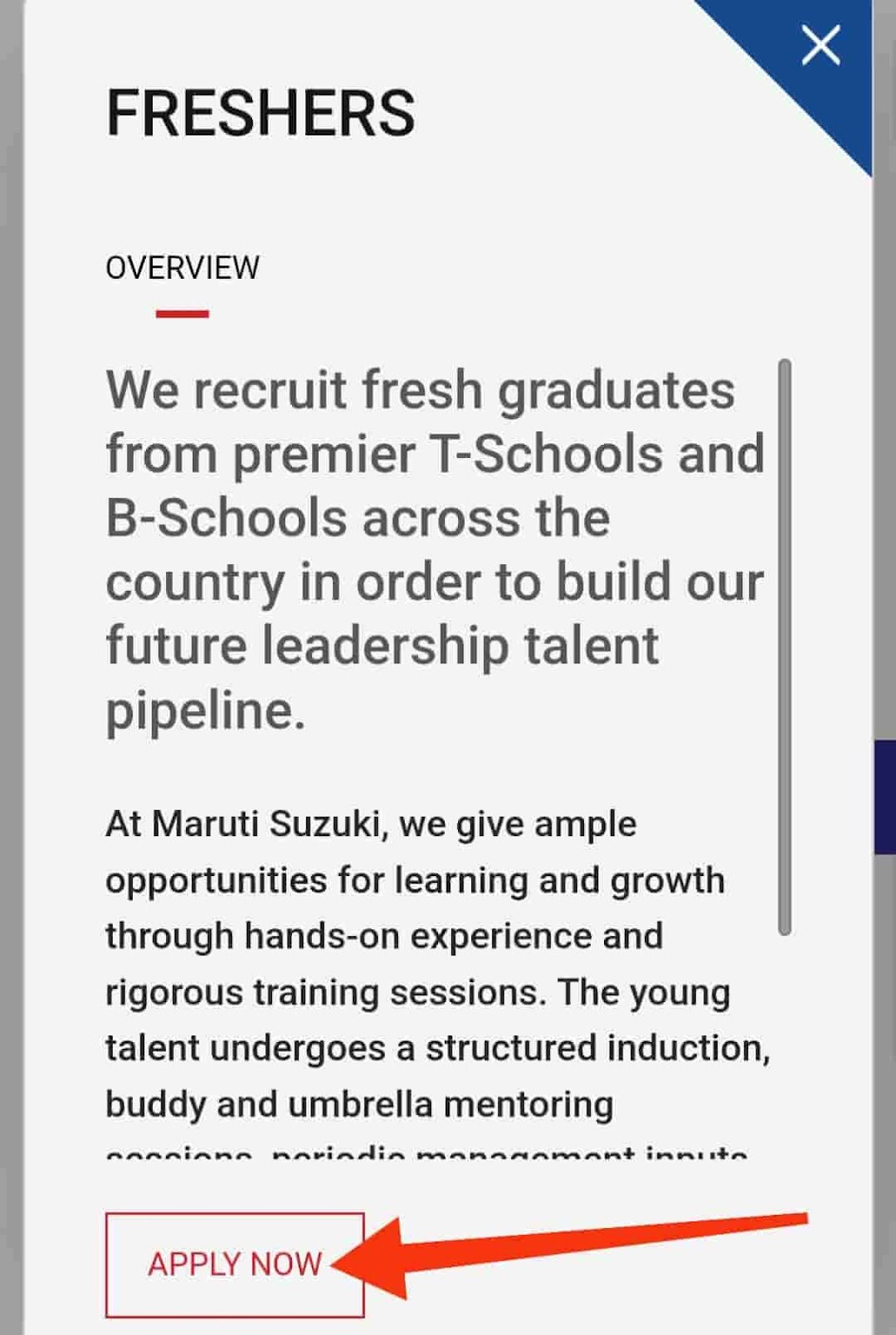 जॉब पाने के लिए बस आपको Maruti Suzuki के ऑफिसियल करियर वेबसाइट “ https://www.marutisuzuki.com/corporate/careers “ पर जाकर ऑनलाइन अप्लाई करना होगा |