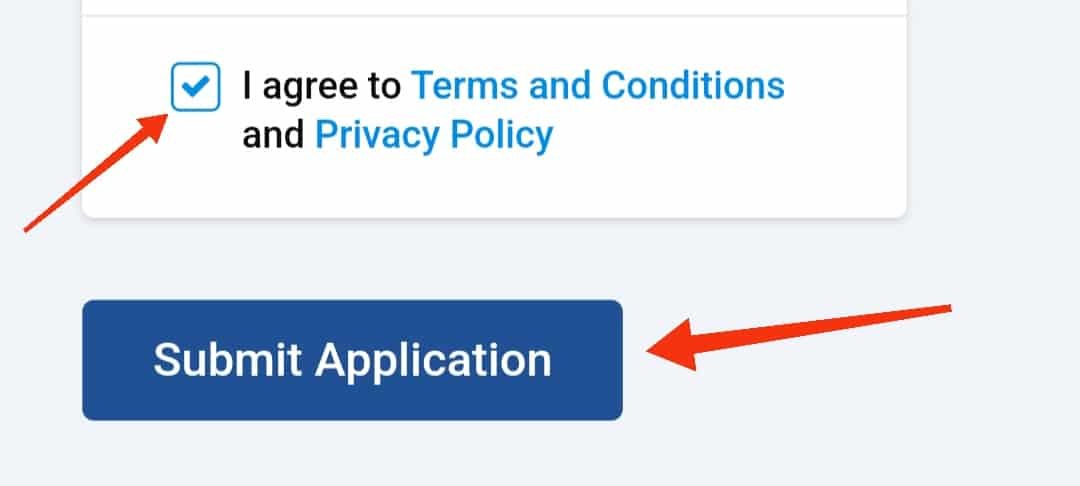सभी डिटेल्स भरने के बाद आपको I agree to Terms and Conditions and Privacy Policy के साइड में दिए गए Box पर टिक करके Submit Application पर क्लिक कर लेना है।